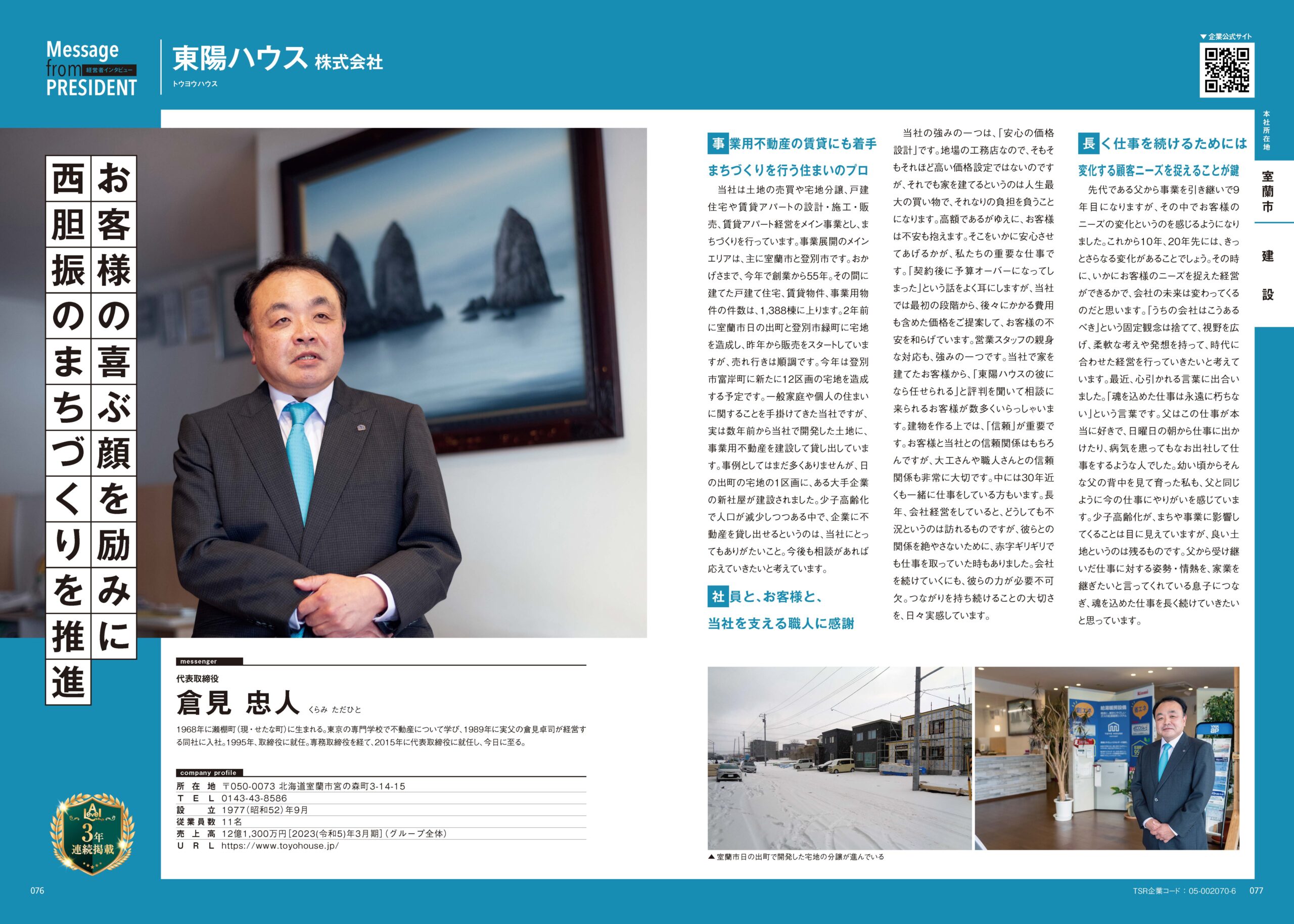 株式会社東京商工リサーチ発行のAlevel(エラベル)2025北海道の「優良企業」経営者インタビューに、