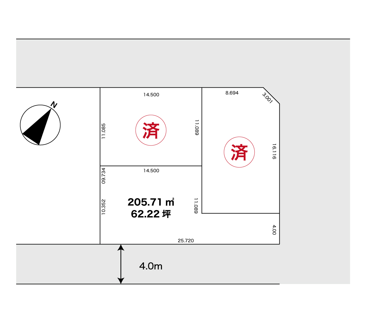| 205.71㎡ | 62.22坪 | 9,955,200円 | 建築条件付 |